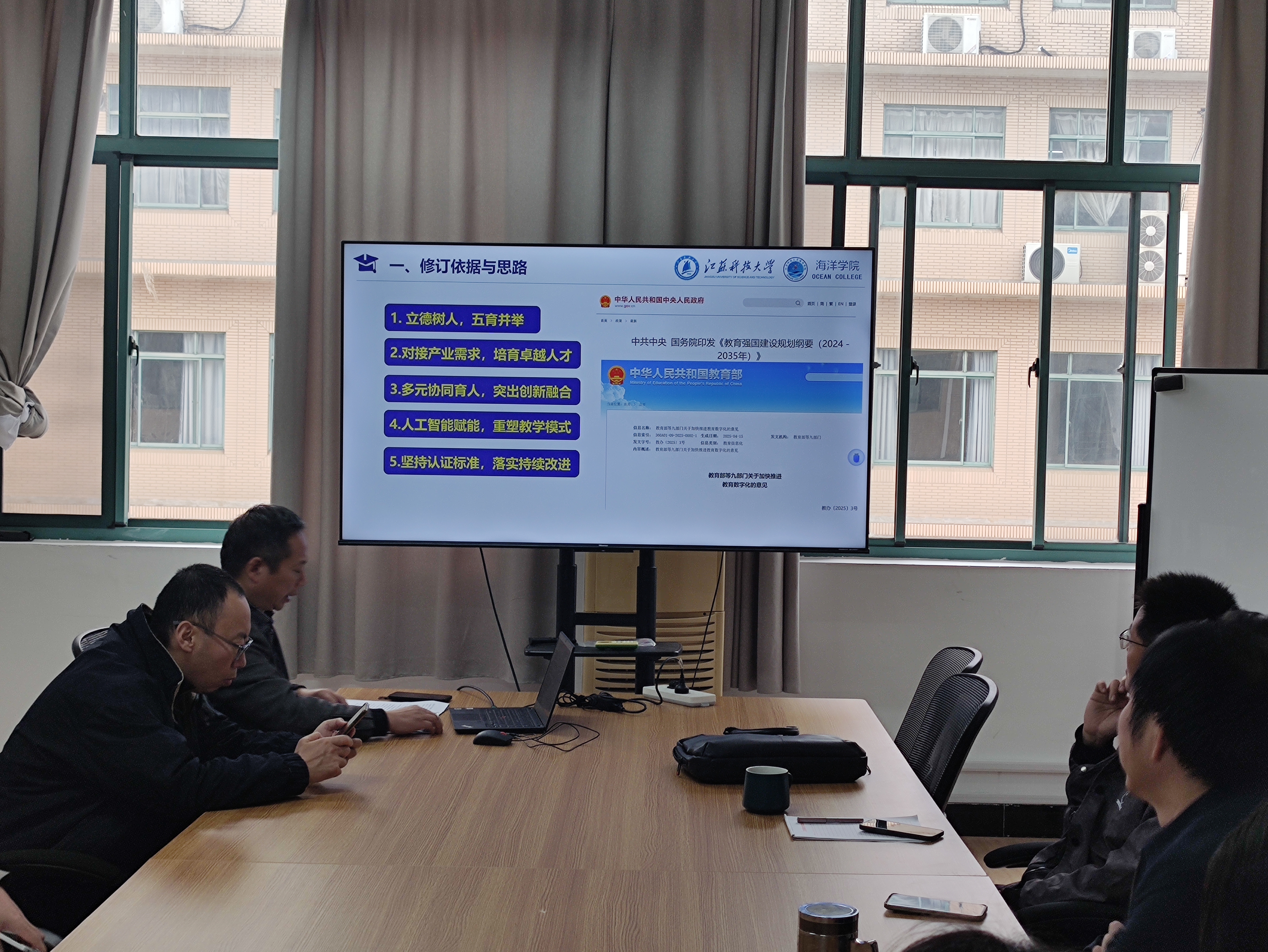 海洋信息工程专业负责人李锋汇报了目前用人单位的实际需求以及国内外高校海洋相关专业的调研结论,并针对学生专业技能的培养、海洋信息工程专业的学科特色和优势、专业的建设现状等作了分析和规划。他指出,新方案要进一步优化了知识结构体系,应紧密结合当前行业发展趋势和人才需求进行课程设置,同时注重培养学生的实践能力和创新精神。